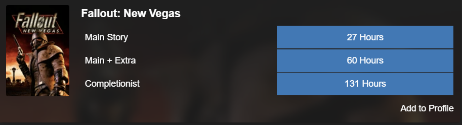 베데스다 게임 특. 본편 플레이 타임 짧고, 컴플리션은 매우 긺.. 다른 컨텐츠로 할 게 많다는 말이다. 본편 자체는 20시간 정도로 생각보다 빠르게 끝낼 수 있다. 중간에 다른 길로 샌다면 그 시간은 늘어날 것이고..