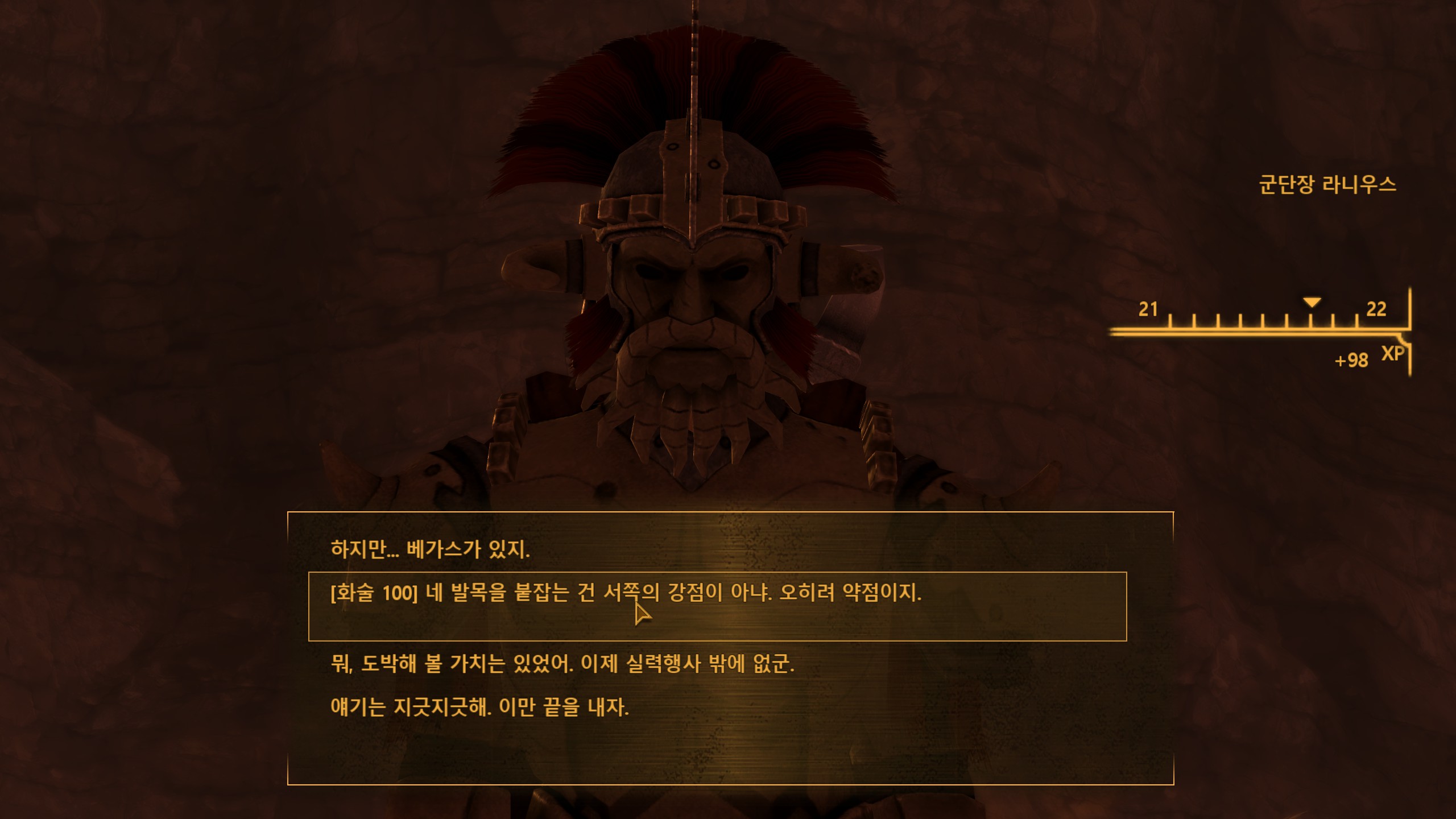 요놈 대체 어떡해 죽임..? 나는 정말 강하다고 생각했는데 얘는 못 죽이겠더라.. 그래서 그냥 화술 100 찍고 완료시켰다.. 아무튼 이렇게 카이사르 군단은 보내버리고.